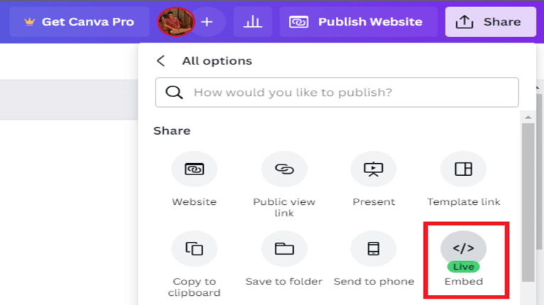 - Publish or Share: Once you’re done, you can publish or share your design, and the embedded content will appear.